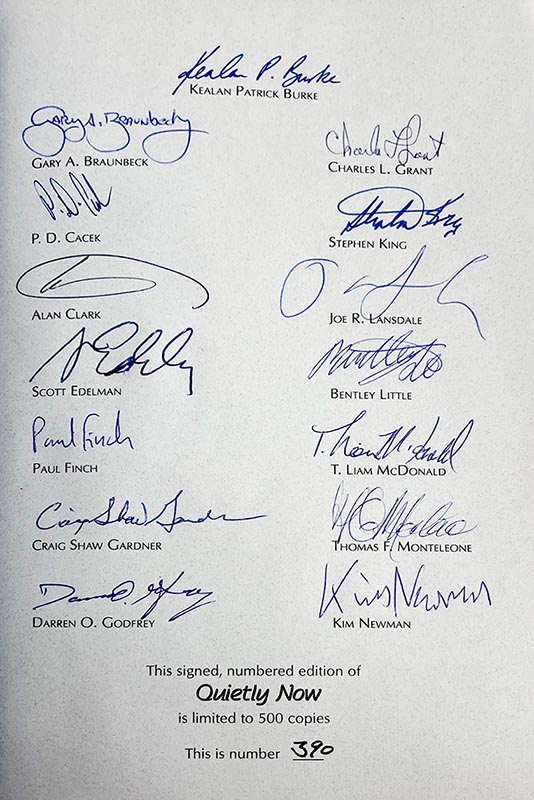 - S/L edition limited to 500 copies signed by all contributors including Stephen King. No slipcase. Issue Price = $50