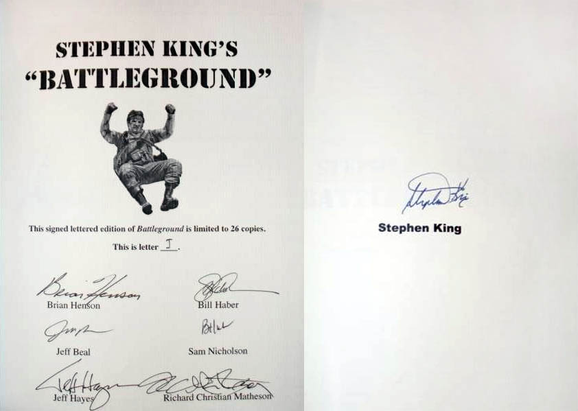 - Numbered Edition of 125 copies issued in a custom slipcase and included a DVD of the Battleground TV episode. Signed by all contributors EXCEPT for Stephen King. Issue price = $125