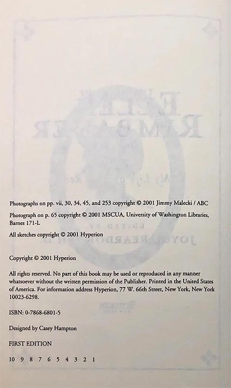 - Hardback edition of unknown copies. Issued with dustjacket and price of $22.95. On the copright page you should see the words "First Edition" and the numbers 10 9 8 7 6 5 4 3 2 1