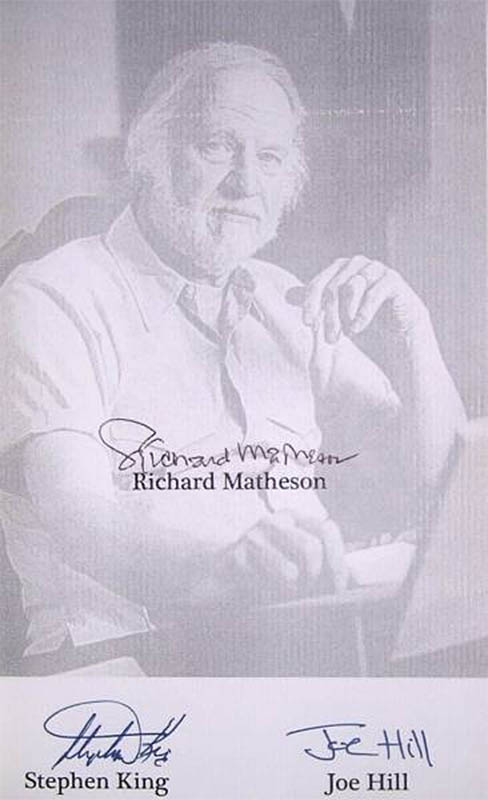 - Signed Numbered Edition of 750 copies issued in a custom slipcase with the same cover art as the book. Signed by Stephen King and all contributors EXCEPT for Richard Matheson. Issue price = $150