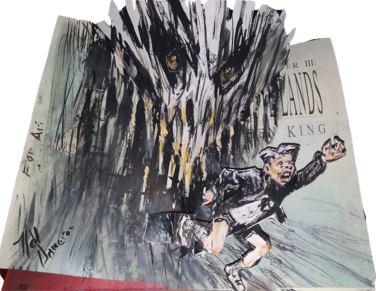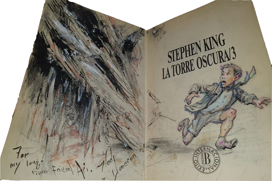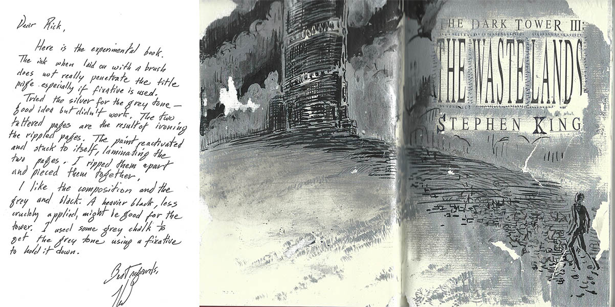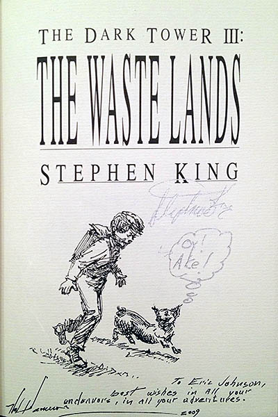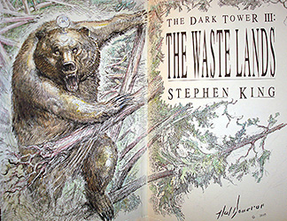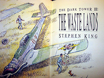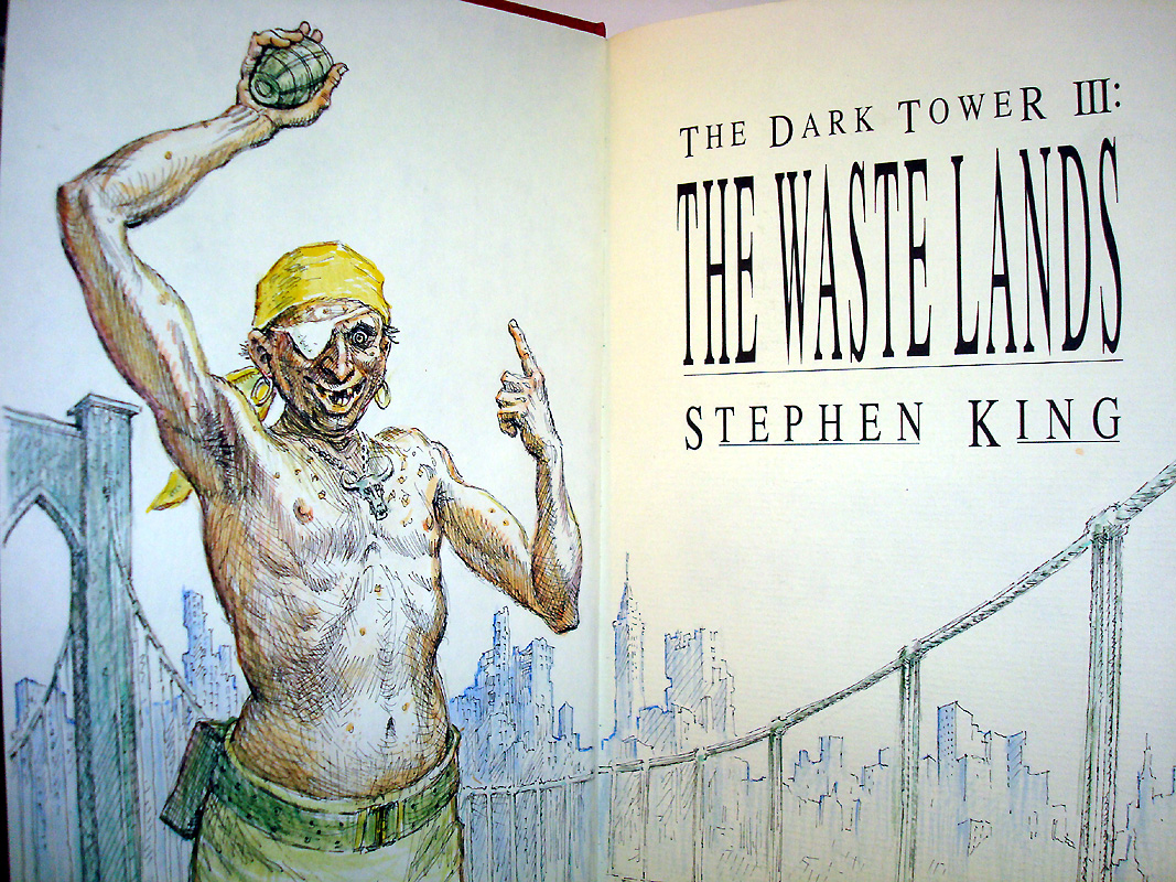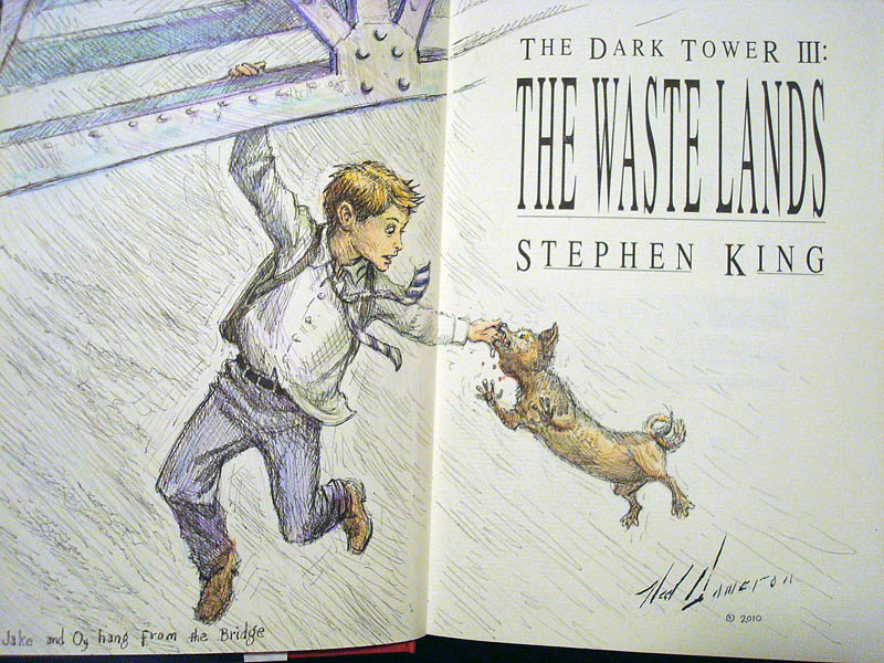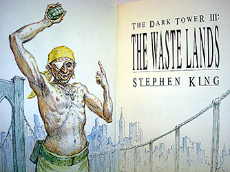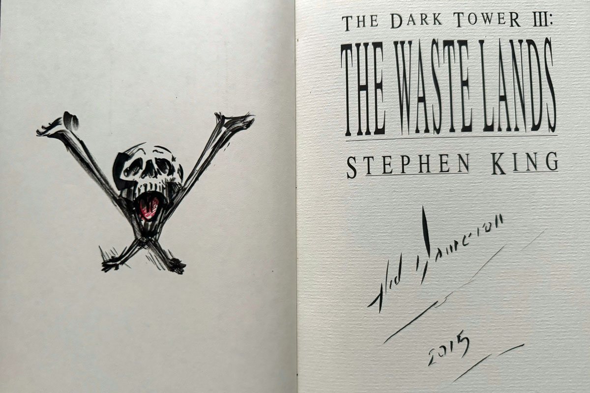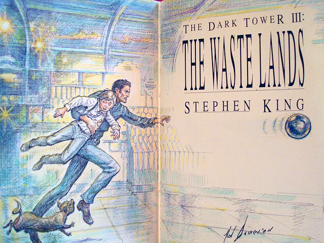 In July of 2009, artist Ned Dameron announced he would be doing remarques in twenty-one copies of the Grant first edition of The Waste Lands. Over a period of about 18 months, Dameron (who produced the original illustrations for the book) released these for sale via eBay. Each remarque was numbered and signed by the artist.